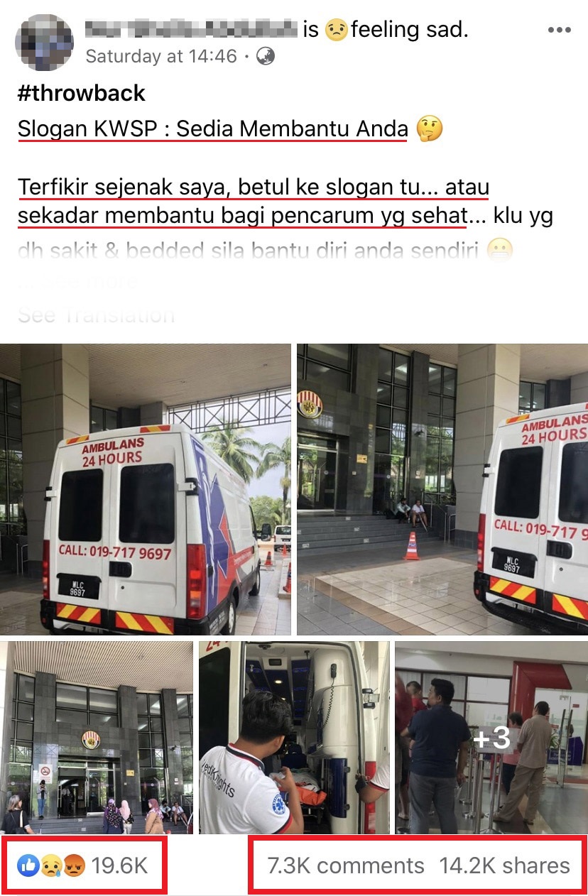 他的答案却令人难过!他说不可以,就算当事人必须乘搭救护车和躺在担架上都无妨,当事人就是必须亲自到公积金局,通过他们的机器进行指纹辨识,才能够领取公积金。