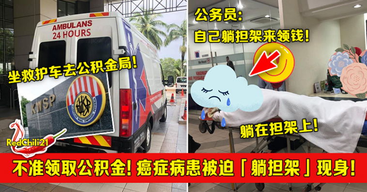 大马一名癌症病患因为经济需求,所以想要通过家人的帮忙把公积金里的钱领出来,没想到公务员坚持要当事人现身才可领取,该病患最后因此被迫躺在担架上,去了公积金局一趟!