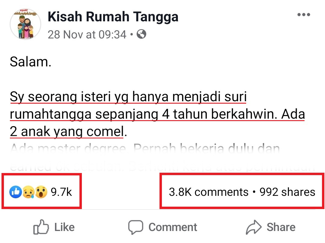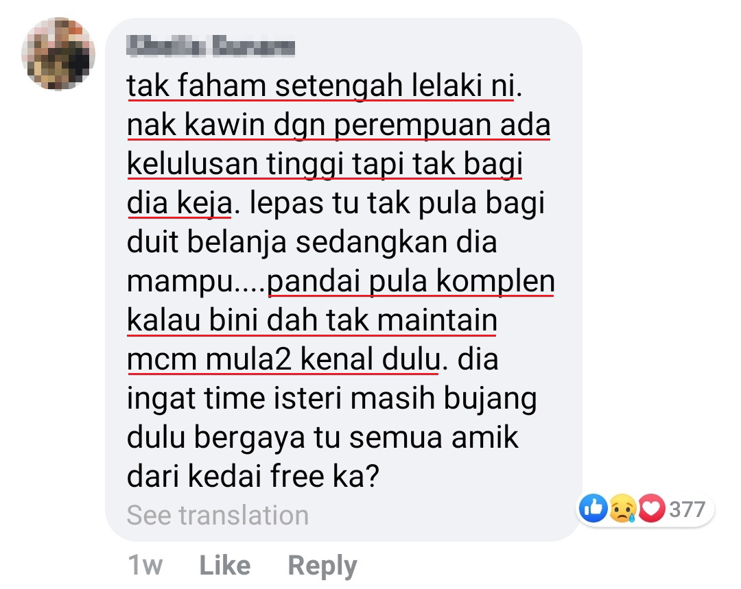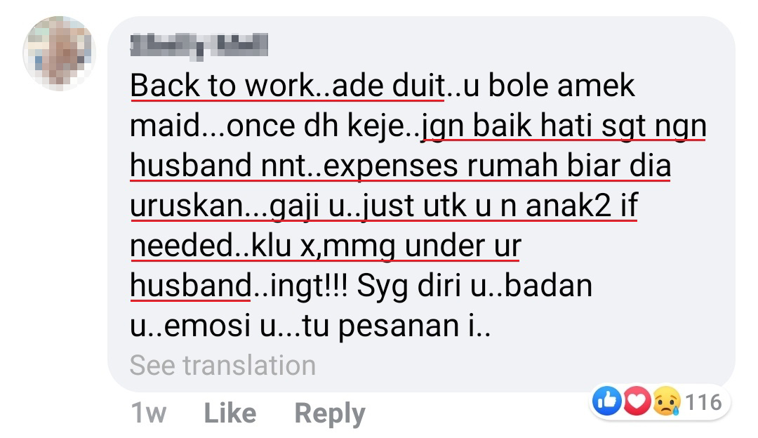 一名大马女子日前在《Kisah Rumah Tangga》面子书投稿表示:她婚后为了这个家,放弃了原有的高薪工作,现在竟然被老公嫌弃!