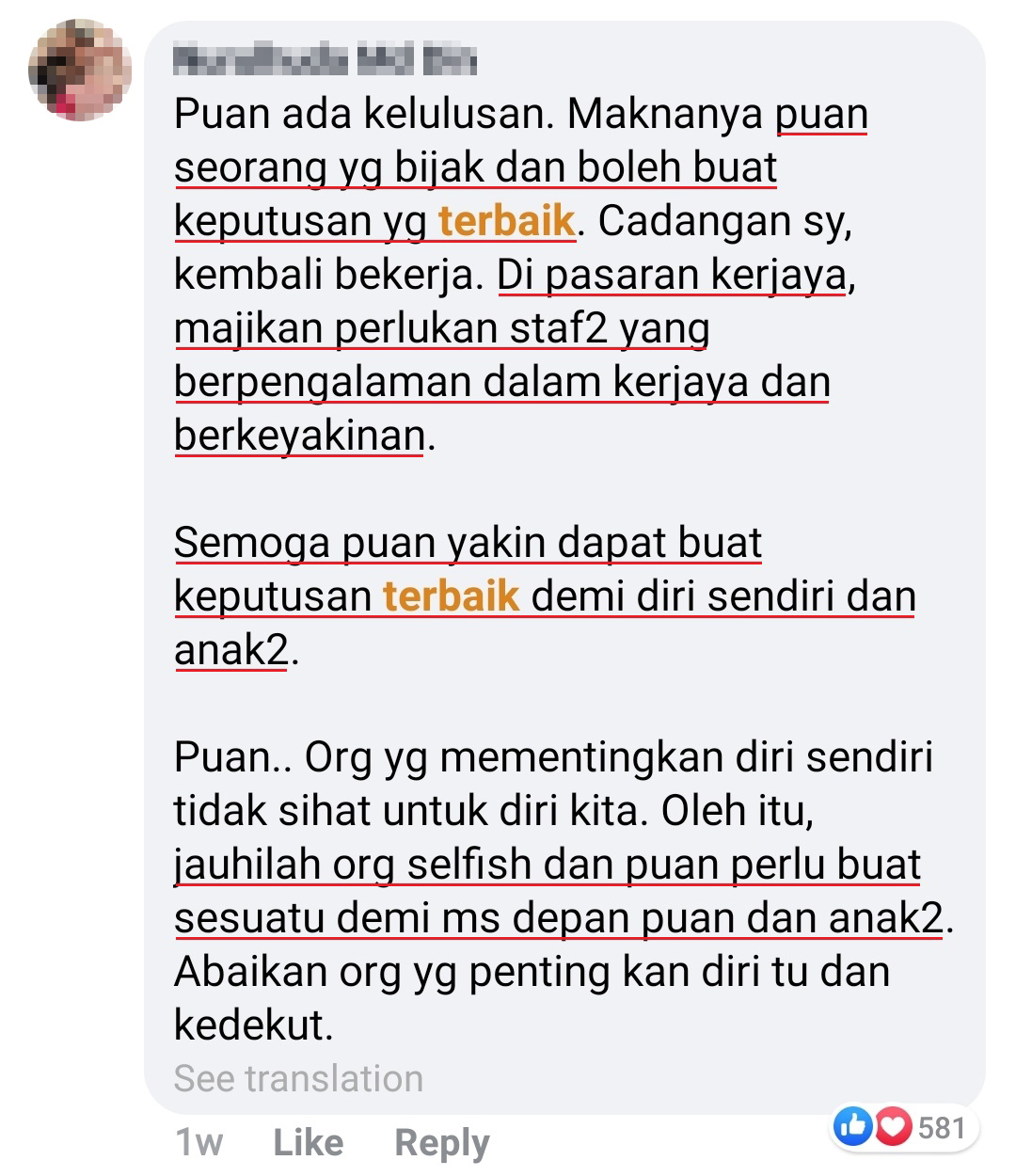 ▼ 许多网友都建议她回到职场上!「其实很多人夫都是这样,跟妻子斤斤计较!我建议妳出去找工作,恢复上班。」
