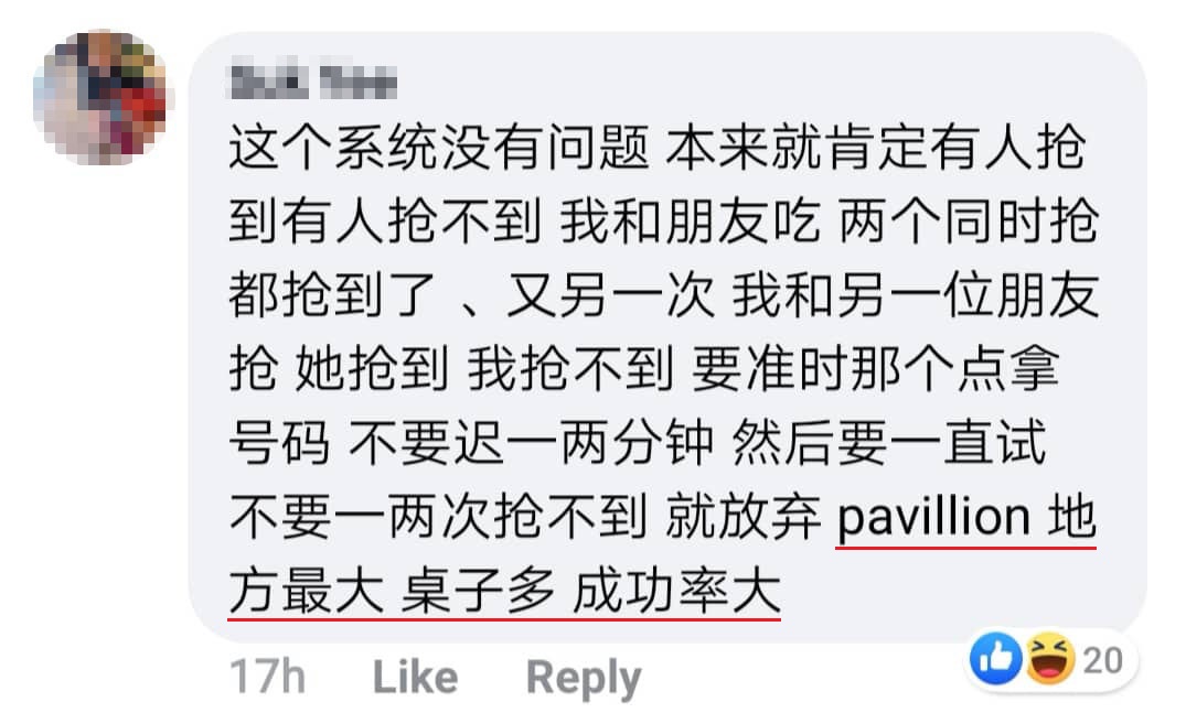 ▼ 佛心的网友表示:“Pavilion地方最大及桌子多,成功的机率会比较大哟”!