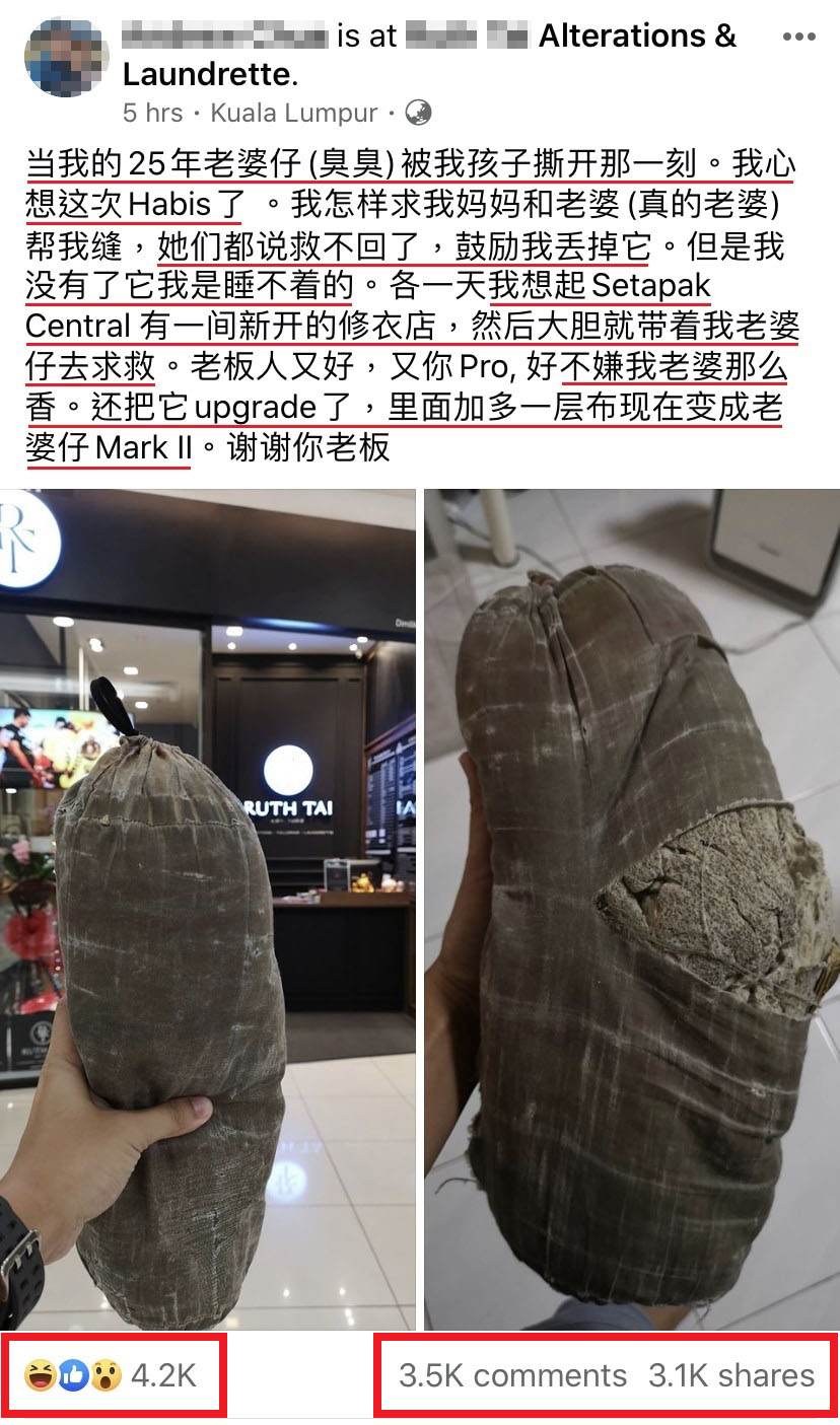 一名大马男子在面子书PO文,声称他有一个25年的“臭臭”,近期因为被儿子撕裂了,让他倍感心痛!