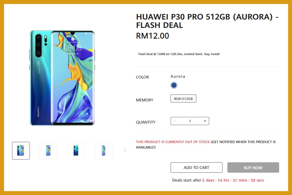 ▼ ① HUAWEI P30 Pro 只需RM12(原价 3,399)!只限3台!