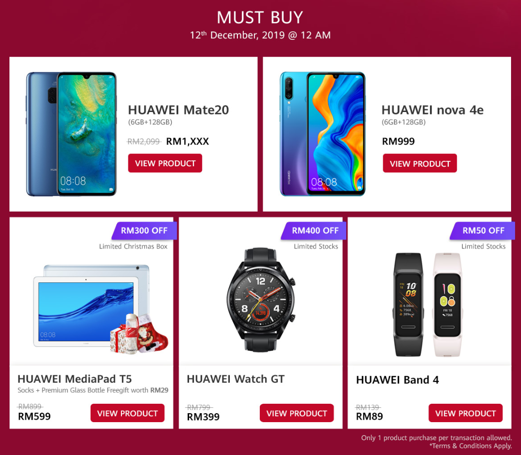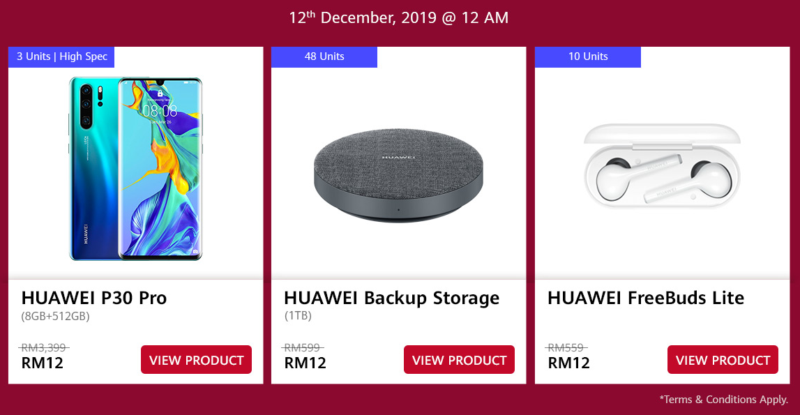 上个月的双11大促销,你错过了什么?!别伤心,因为双12就快到啦~ 大马华为(Huawei)推出双12大促销,指定商品只需RM12,其中还包括了 Huawei P30 Pro!