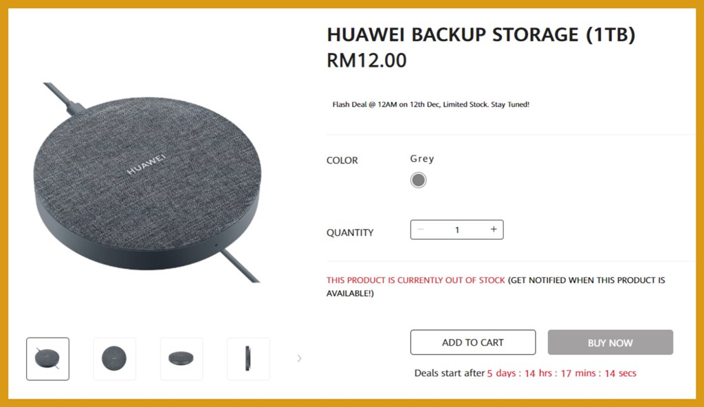▼ ② HUAWEI Backup Storage (1TB) – 只需 RM12(原价 RM599)!只限48个!
