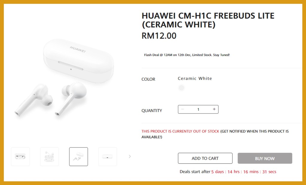 ▼ HUAWEI CM-H1C Freebuds Lite (Ceramic White) – 只需 RM12(原价 RM559)!只限10个!