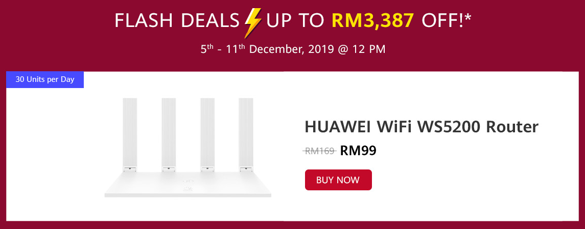 ▼ HUAWEI WiFi WS5200 Router 只需RM99(原价 RM169)!