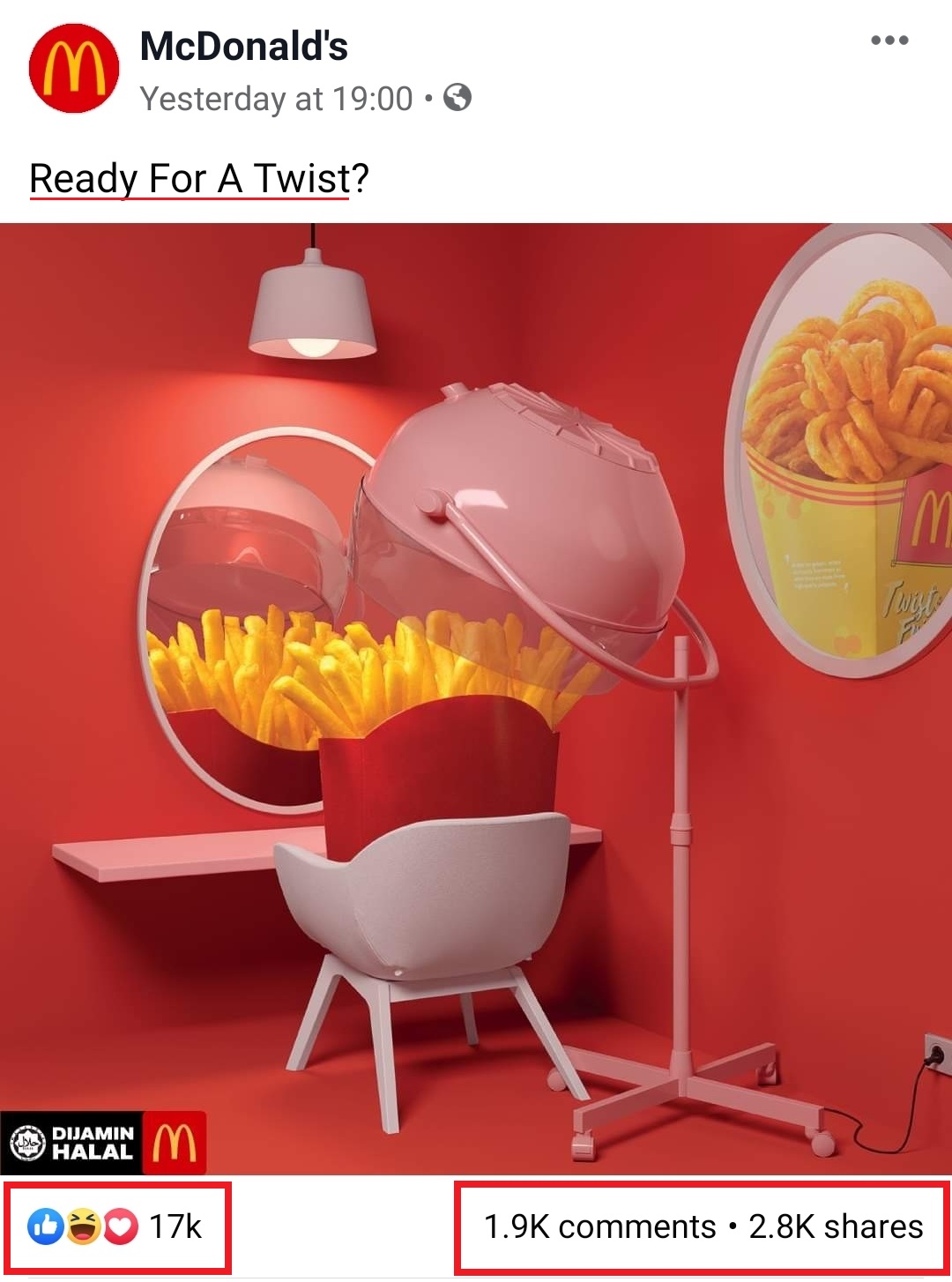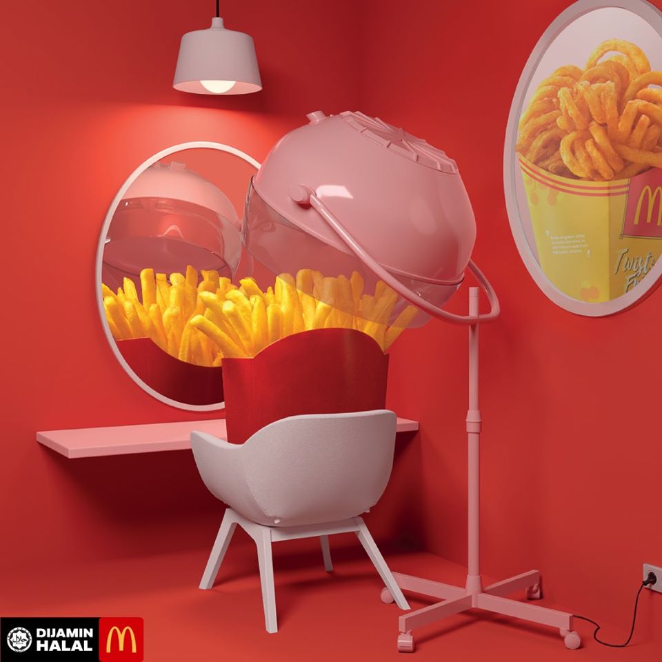 昨日,大马麦当劳透过官方面子书发布一张图片,帖文里写道:「Ready For A Twist?」图片里有一盒薯条坐在理发店的镜子前,正在烫卷头发。