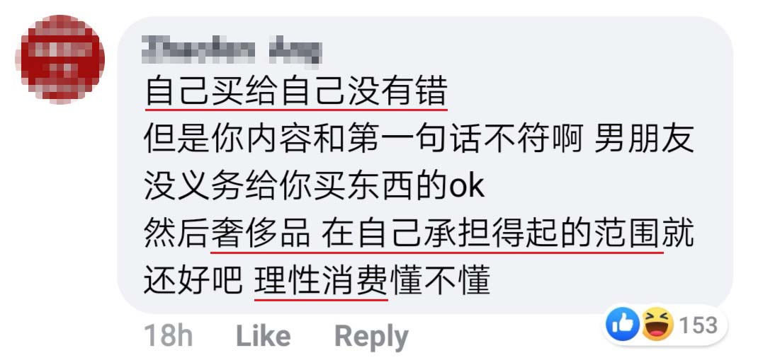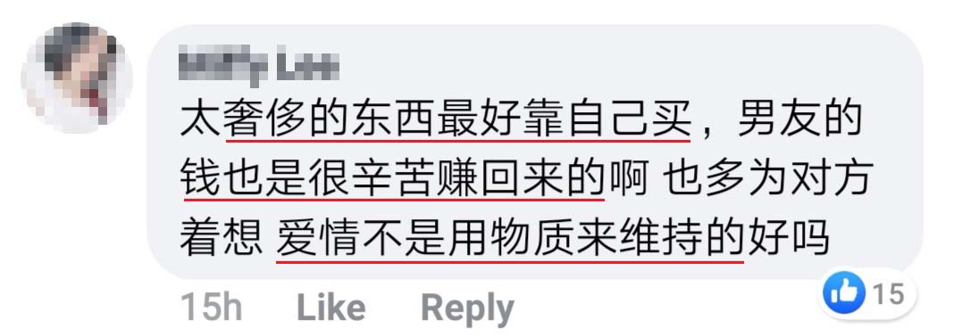 ▼ 也有网友表示“奢侈品最好是靠自己买,男友的钱也是很辛苦赚回来的”!而且爱情不是用物质来维持的!