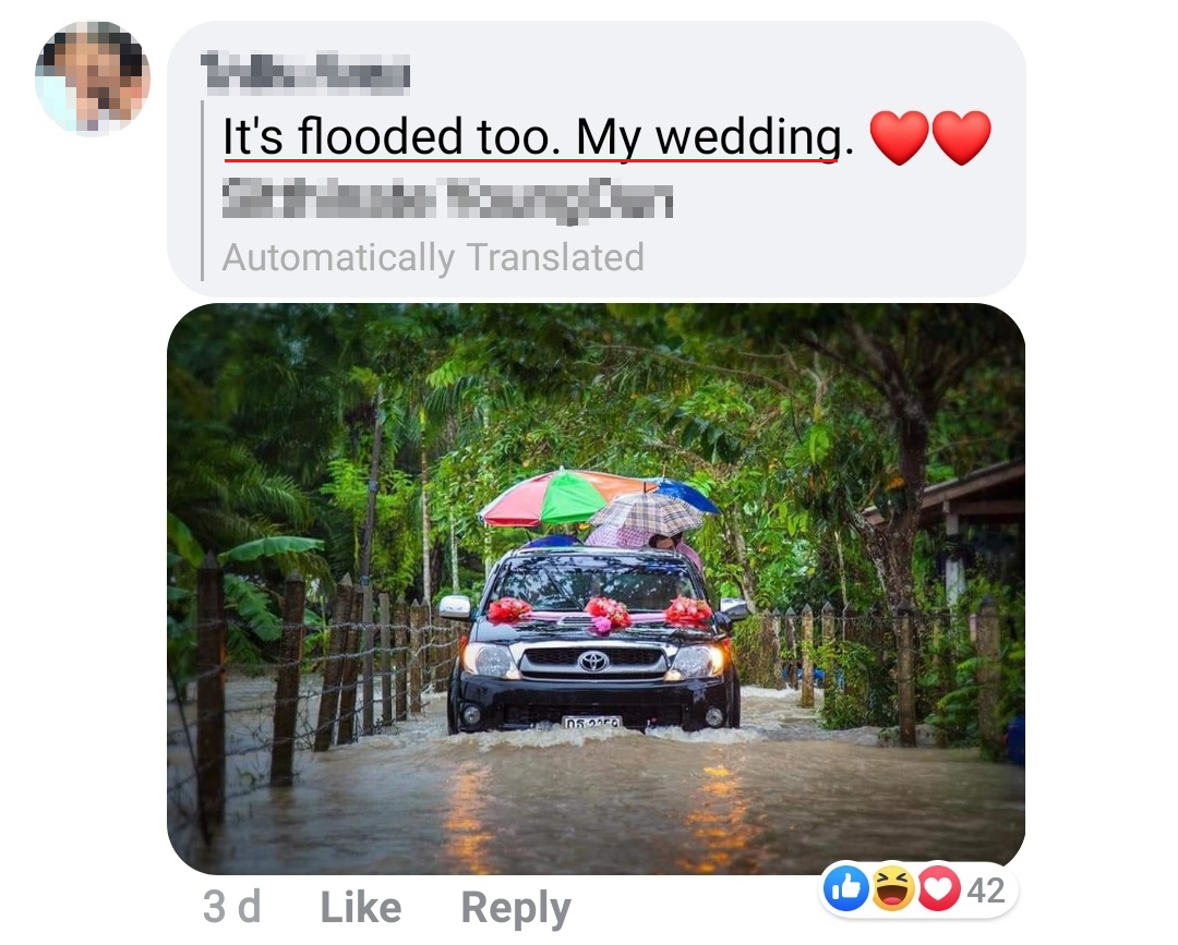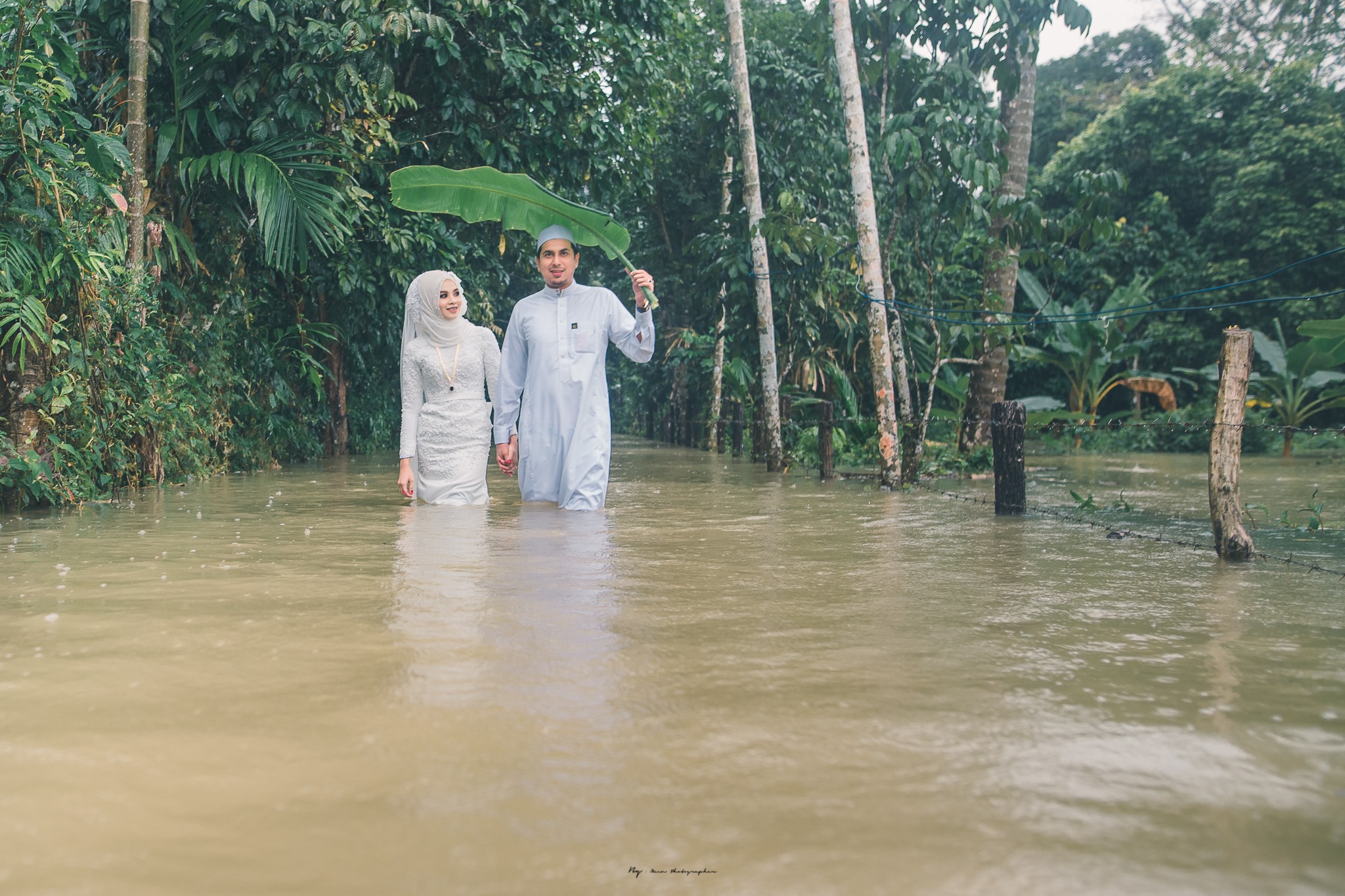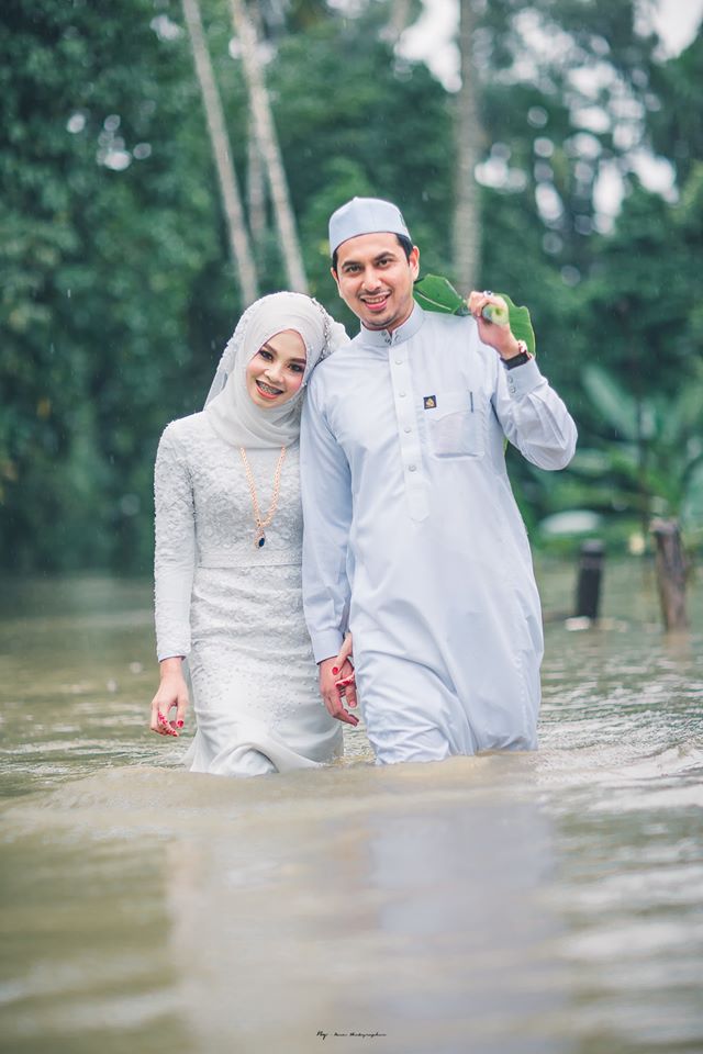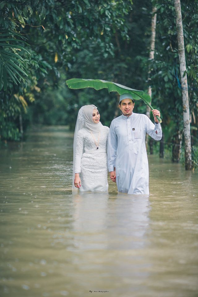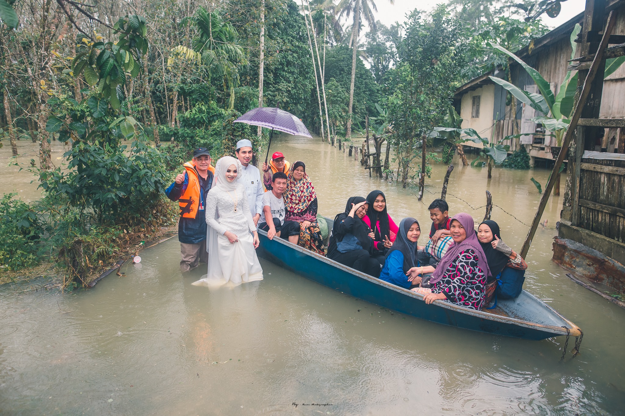 如帖文所写,这对新婚夫妇在举行婚礼的前夕,因为连续不断地下雨,导致 Sungai Golok 的水位急速上升,因而造成水患。