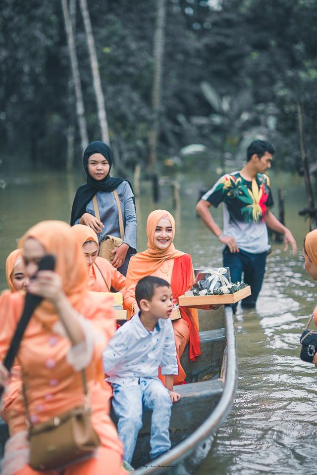 帖文里也透露,当天参加该婚礼的亲戚朋友,都坐上小船前往婚礼地点。