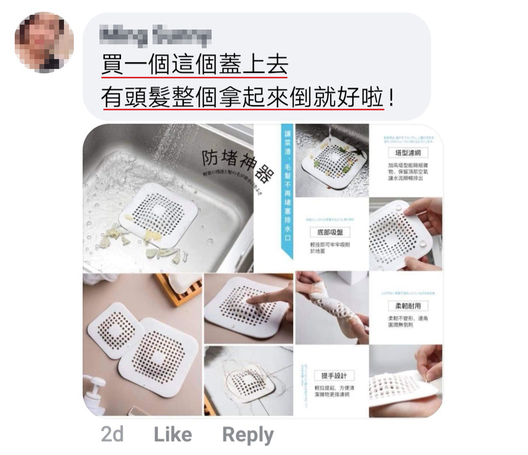 ▼ 但其实大家可以去购买这款“防堵神器”!这样就可以直接拿起来倒掉那些头发!