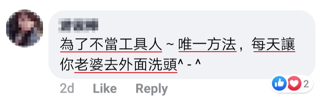 ▼ 如果你不想当工具人,唯一的方法就是每天让妻子去外面洗头吧!