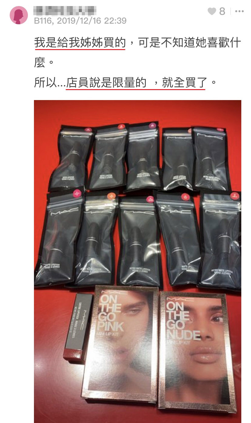 近日,一名台湾男子计划要送 MAC 口红给女友作为圣诞节礼物,没想到因为这个颜色让他大喊崩溃!