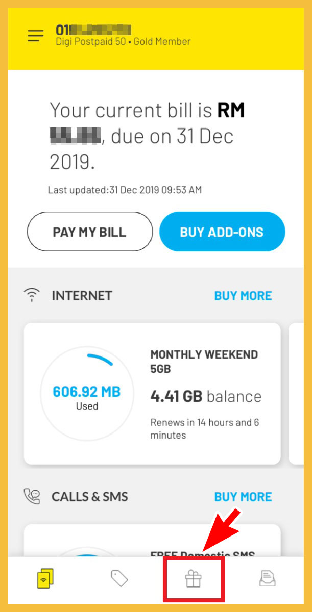 ▼ Step 1:打开手机里的 MyDIGI App,点击下面的“小礼物”。