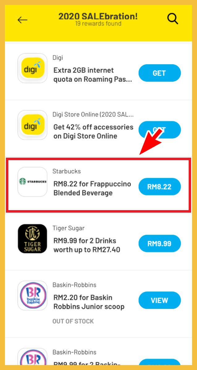 ▼ Step 3:选择你想要享有的优惠(例如:Starbucks)。