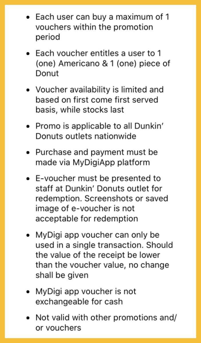 - 优惠只限 1份 Americano 和1份甜甜圈(Donut)。