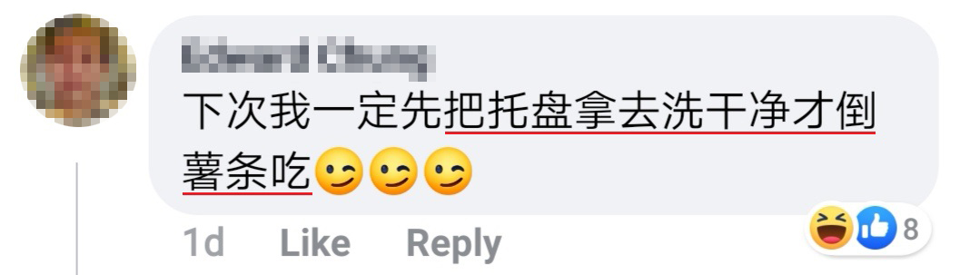 ▼ 知道真相后,网友表示下次一定会先拿去清洗!甚至有网友建议自己带盘去装薯条!