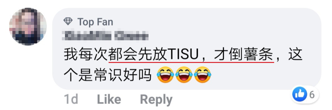 ▼但网友看后却表示她每次都会放Tisu后才倒薯条的!