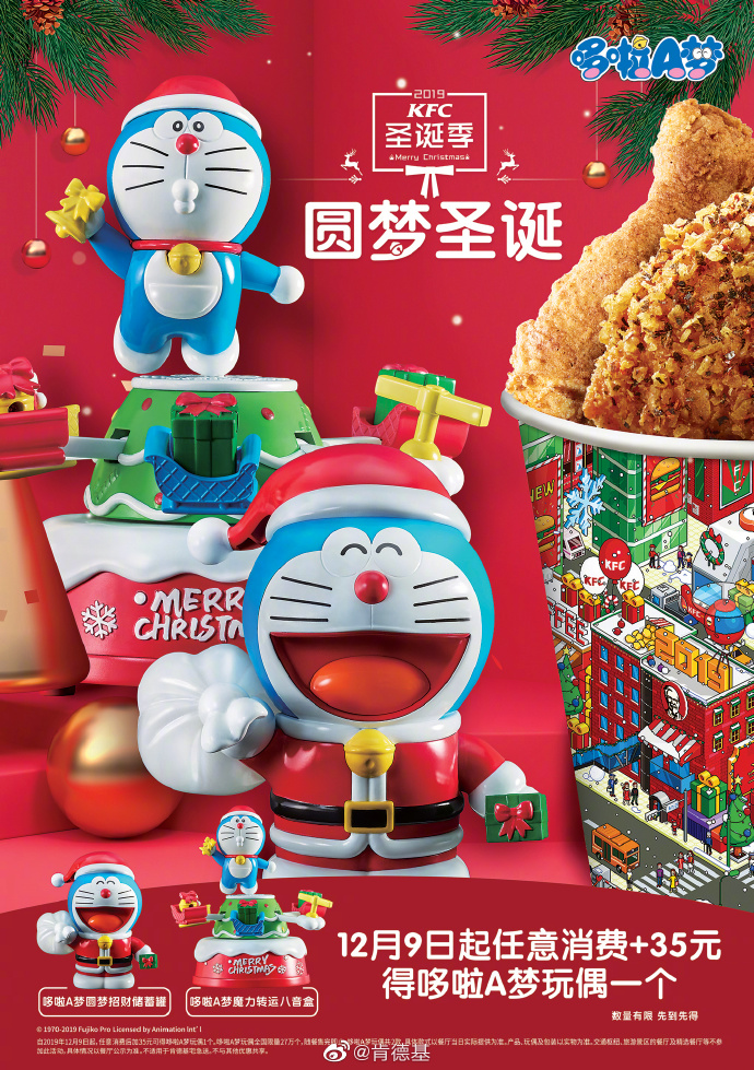 如今,中国KFC正式推出哆啦A梦圣诞主题系列的周边啦!而令人惊讶的是~还推出哆啦A梦音乐盒哦!哇~听起来是不是很期待呢?!