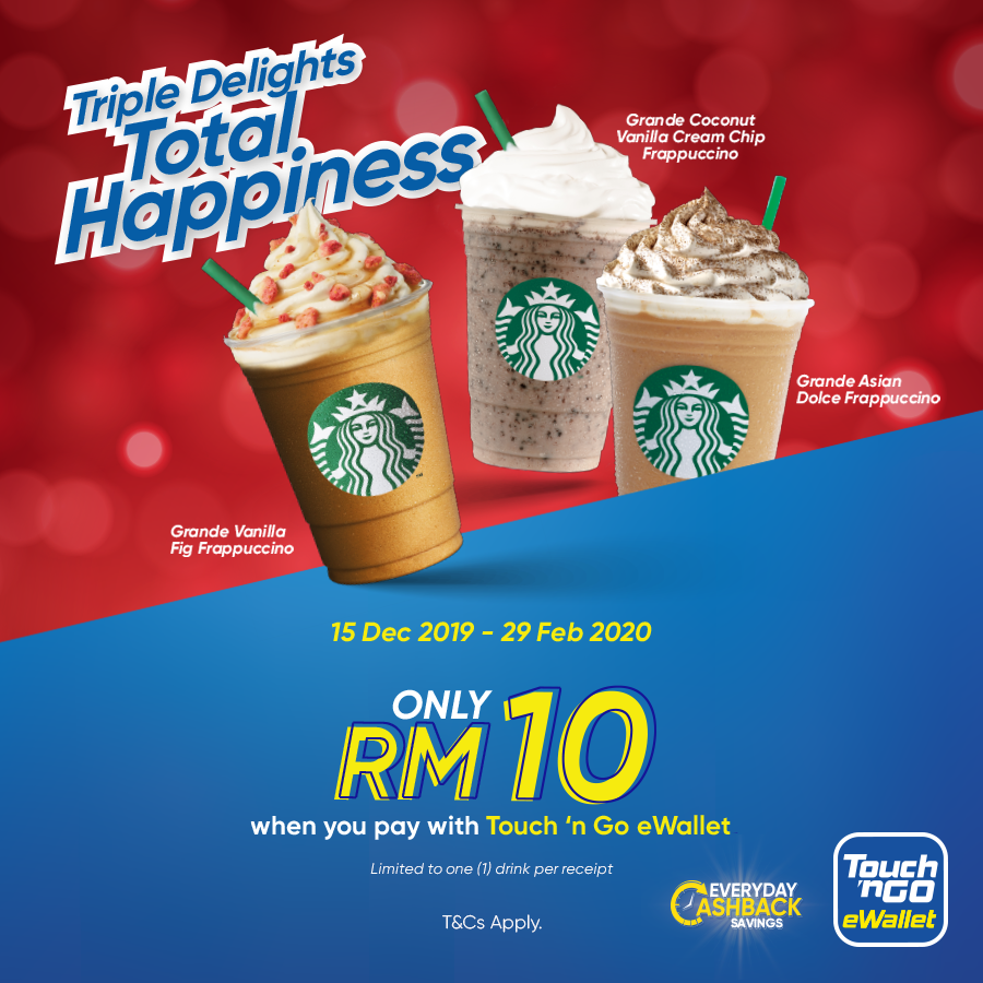 促销条件:使用Touch ‘n Go 付款便可享有RM10价格购买限定的Frappuccino饮料