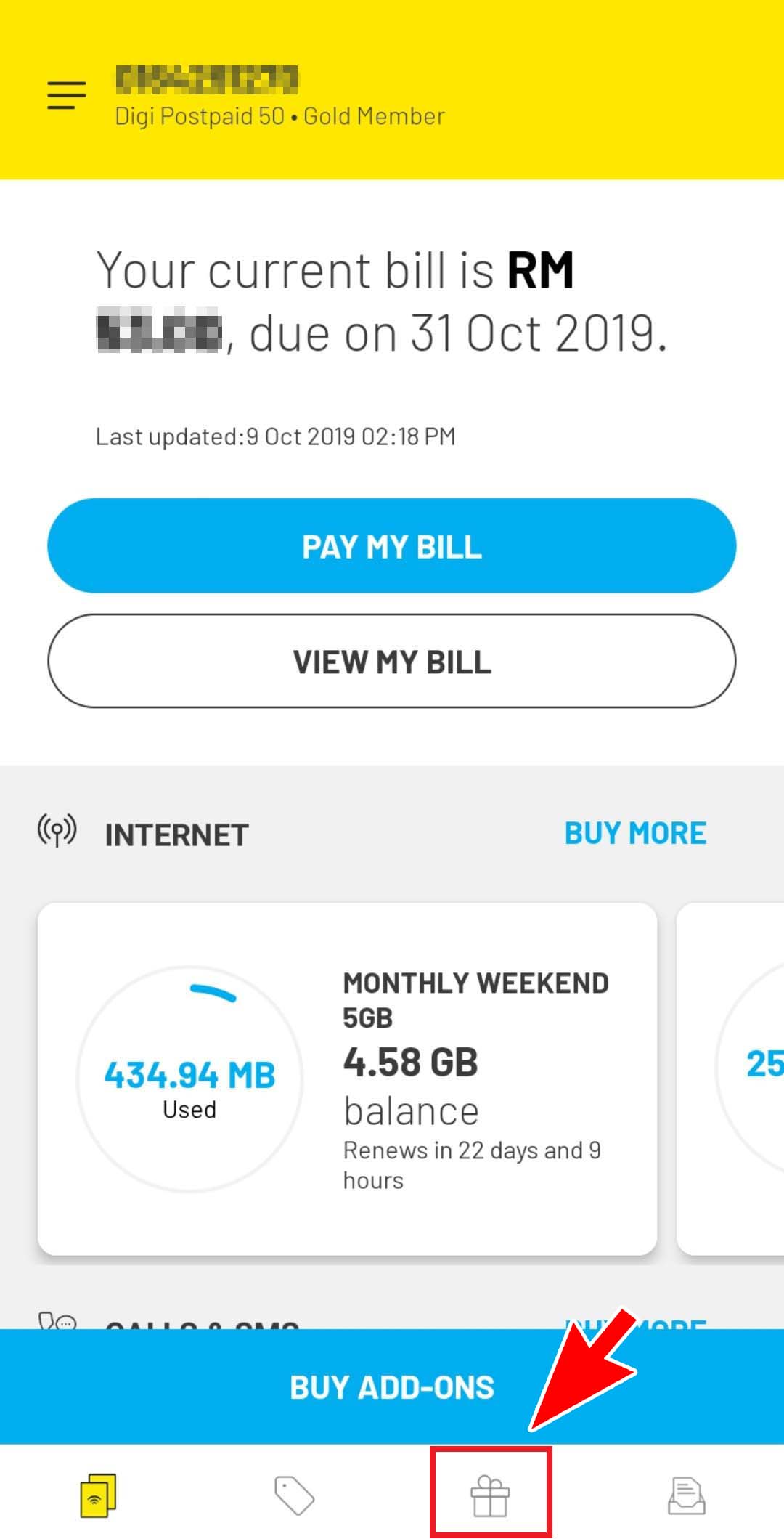▼ Step 1:打开手机里的 Digi App,点击 “小礼物” 。