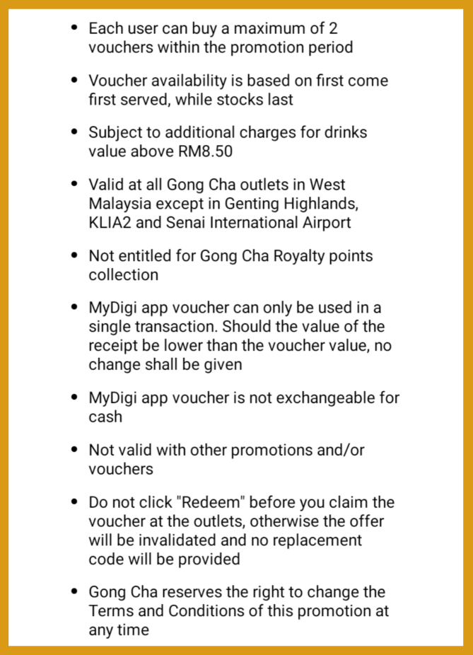 促销地点:全西马的 Gong Cha 分行(除了 Genting Highlands,KLIA2 和 Senai 国际机场。)