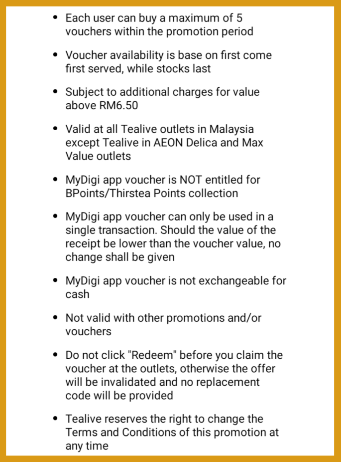 促销地点:全马 Tealive 分行(除了 Aeon Delica 和 Max Value Outlets。)