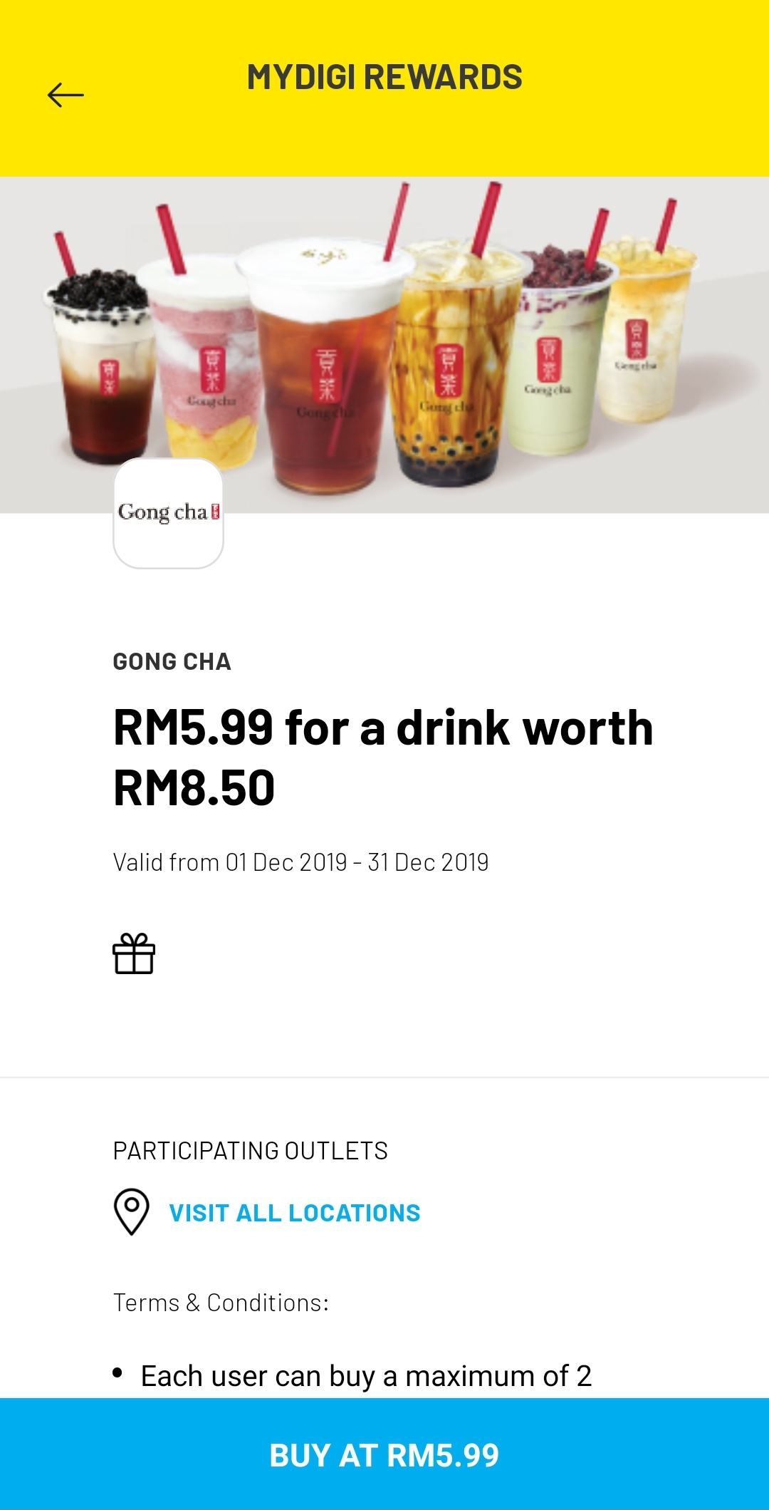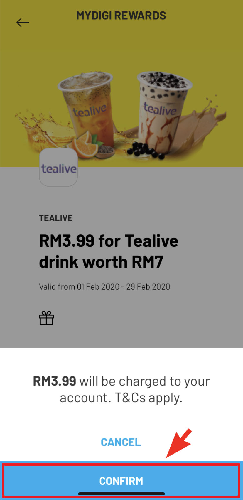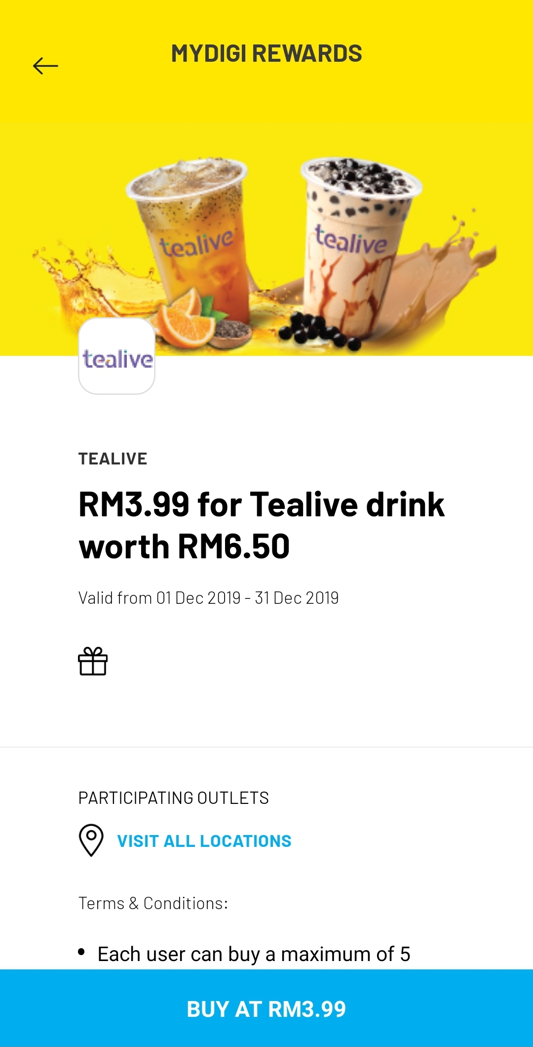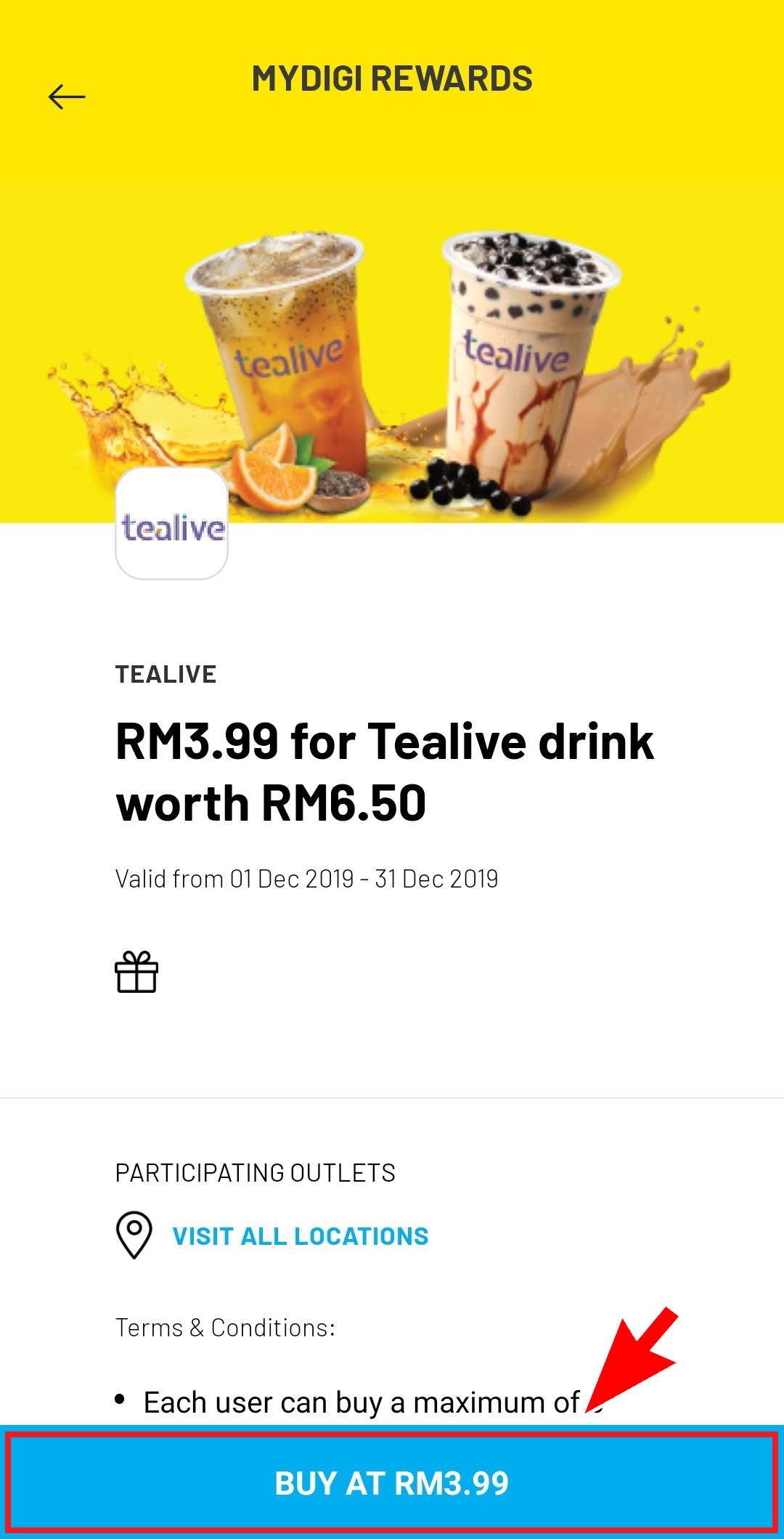 ▼ Step 4:在店内向柜台人员出示该礼券,并点击 “BUY AT RM3.99” 。