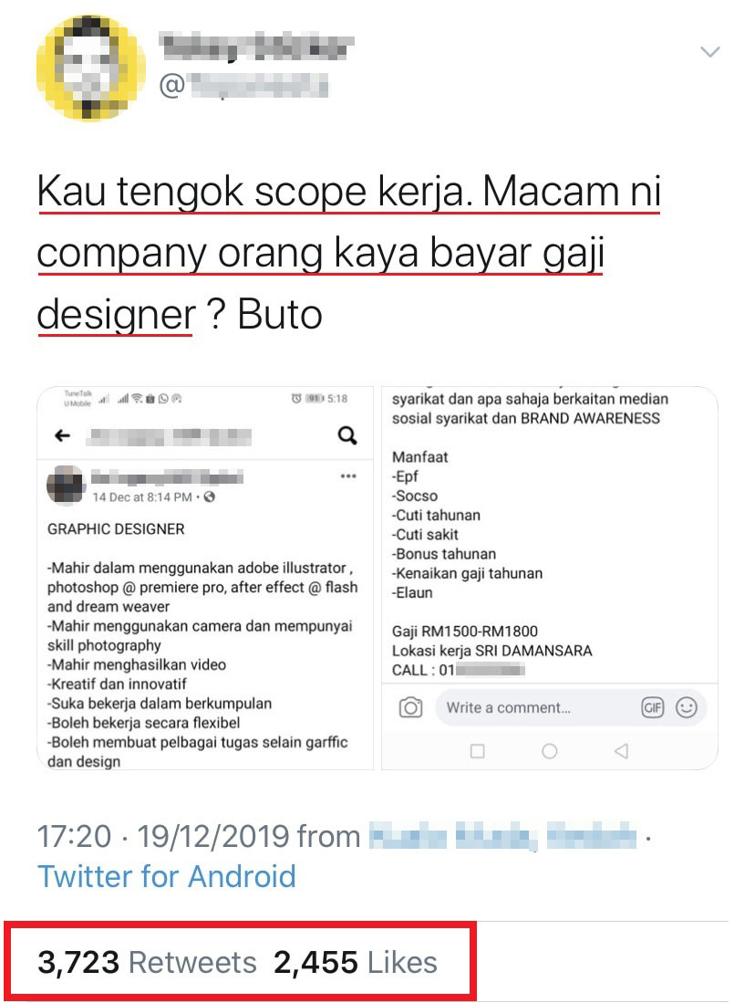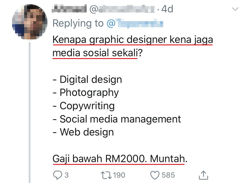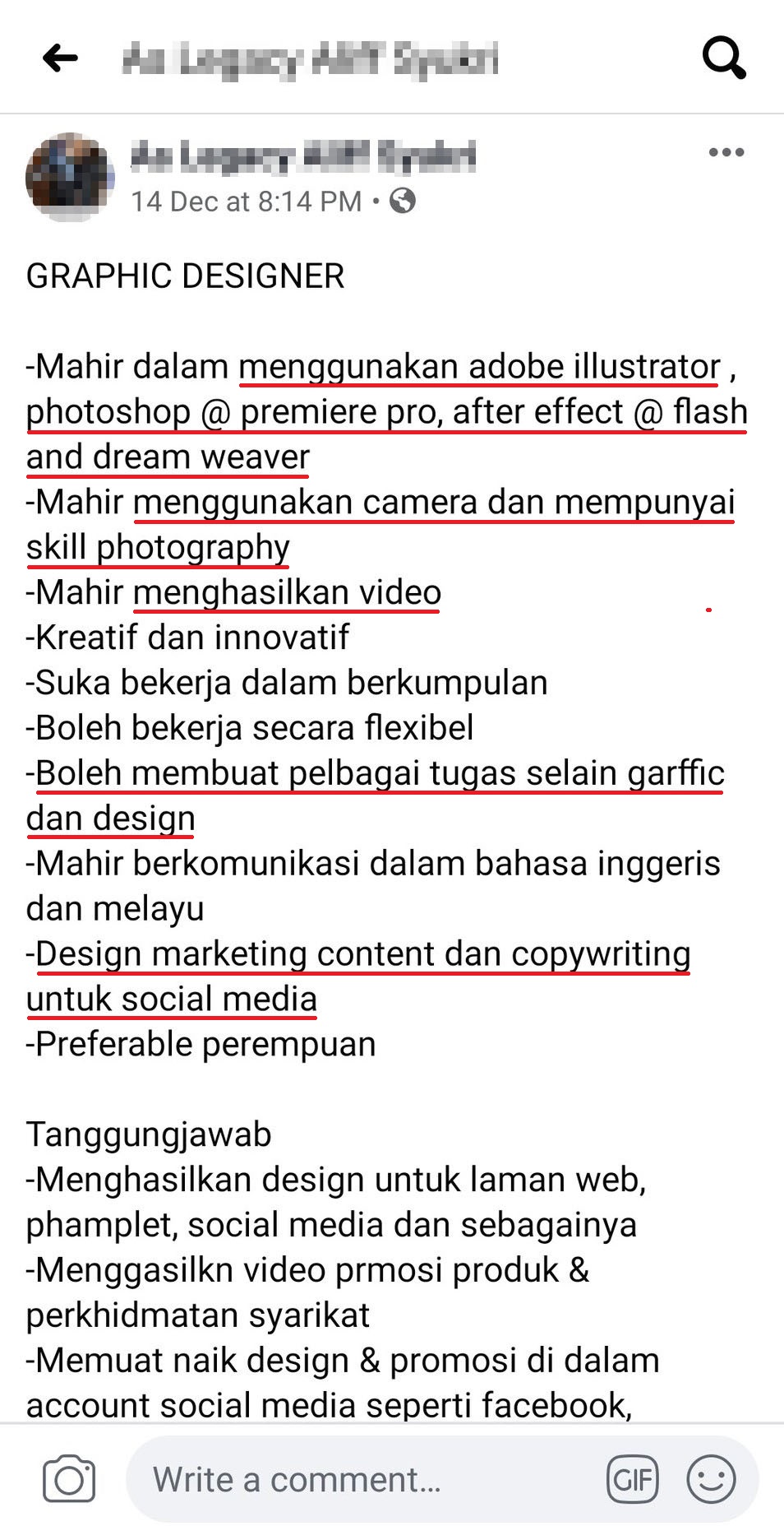 近日,一家来自雪兰莪 Sri Damansara 的一家公司,在面子书发文招聘平面设计师,但帖文里所写的工作范围,让网友们看了傻眼!