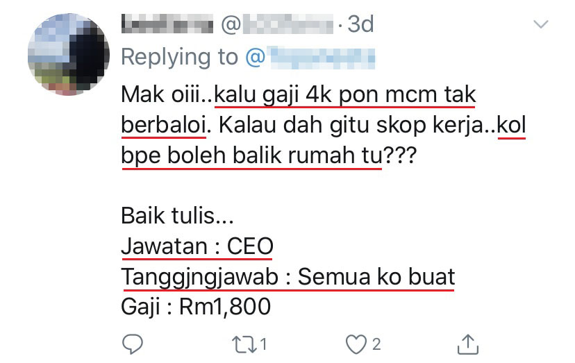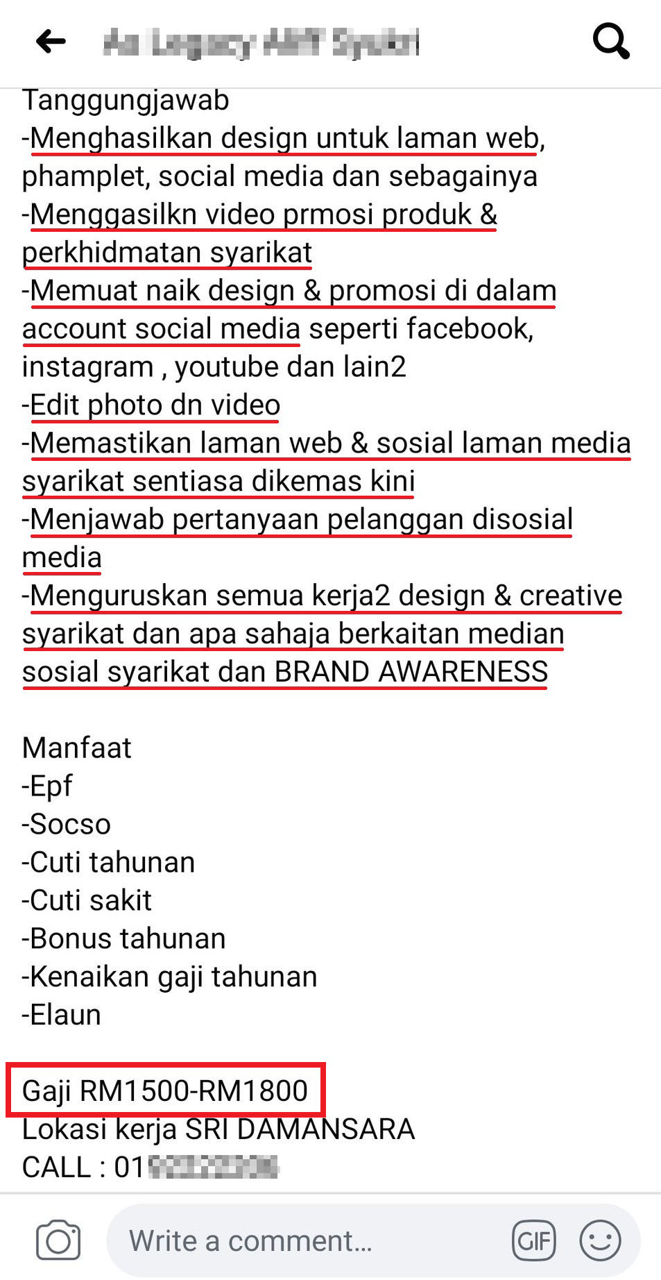 两页满满的工作条件和工作内容,你以为薪水有多高?那你就错了!招聘的帖文最后写着:薪水仅仅只有 RM1,500 至 RM1,800!