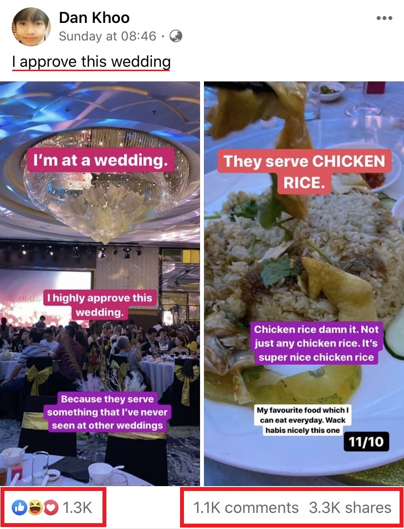 ▼ Dan Khoo 写道:「我非常满意这场婚宴,因为他们送上了我从未在婚宴上看过的一道菜!」