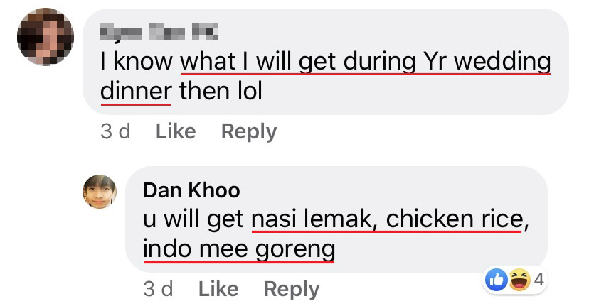 ▼ 网友留言:我知道你以后的婚宴有什么菜了!Dan Khoo 回复有这些!