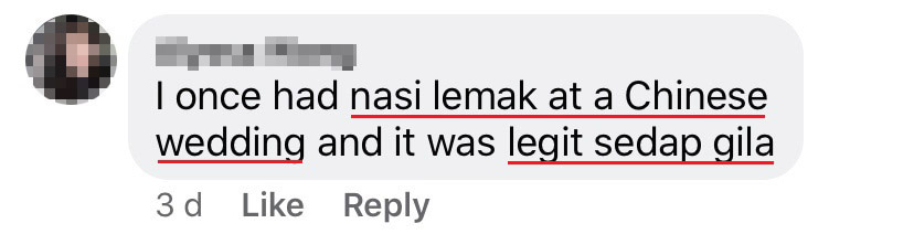 ▼ 一些网友看过椰浆饭(Nasi lemak)出现在华人的婚宴上!