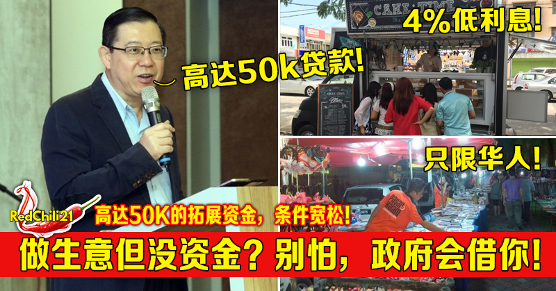财政部长林冠英表示:这项「小贩微型贷款」计划的受惠人士只限大马的华裔小商家,贷款数额最高可达 RM50,000,而贷款的利息只需4%!