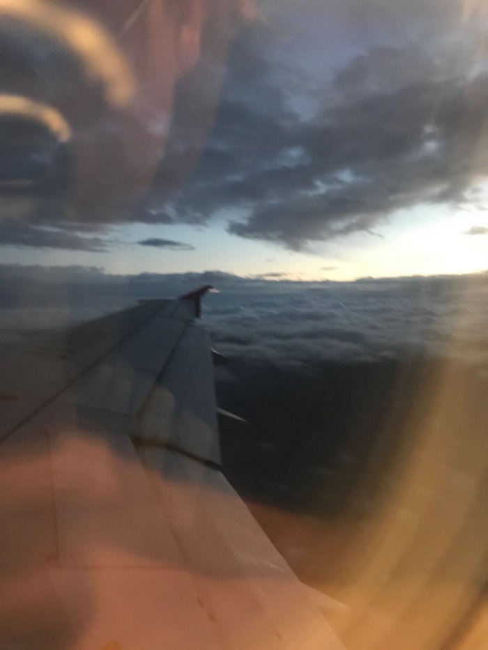 我很有运气的在全程时座位被安排在窗边,能够一览台湾的美景(反光会拍到脸,我就不放了)。以及即将日出但太晚日出没有看到!