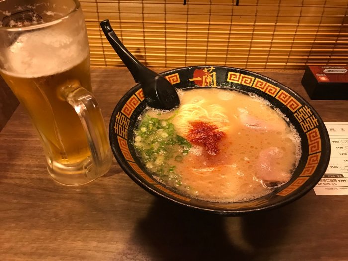 我多点了一杯生啤酒,日本的啤酒绝对是一流!当然,一兰的拉面的价位不太亲民,不过依照日本的物价,以及美味的汤头,想想,我愿意为她消耗自己的钱包!