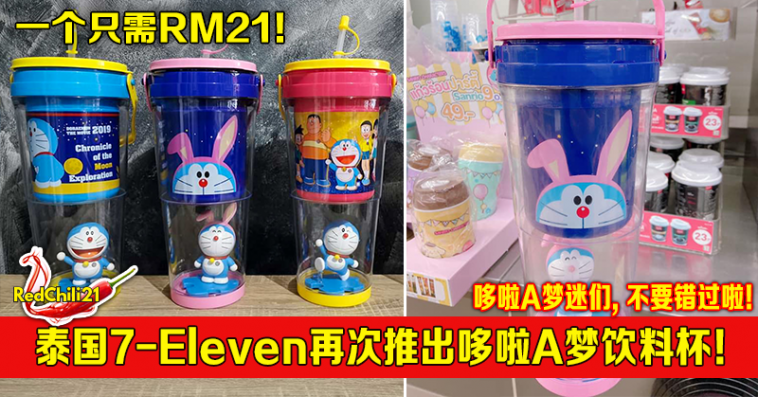 继泰国7-Eleven 推出哆啦A梦造型2 In 1的水瓶!如今又再一次推出新一批哆啦A梦系列的饮料杯啦!