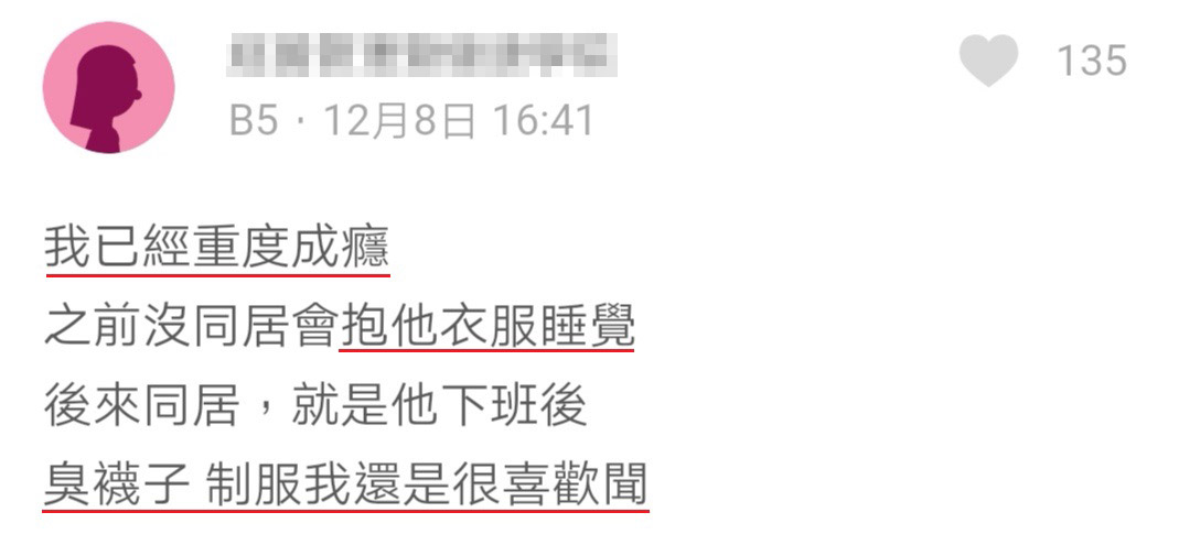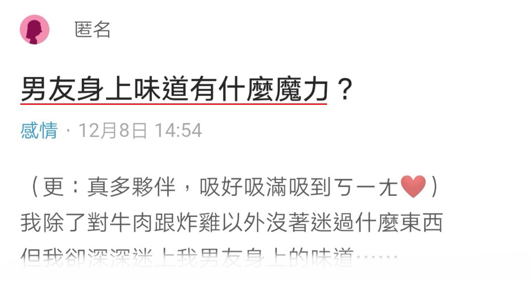 ▼ 不过,有网友好奇帖主是否会闻男友的腋下?!
