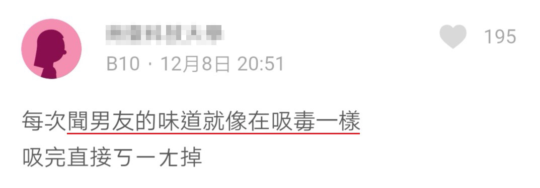 ▼ 网友觉得:“闻男友的味道就好像吸毒一样”!