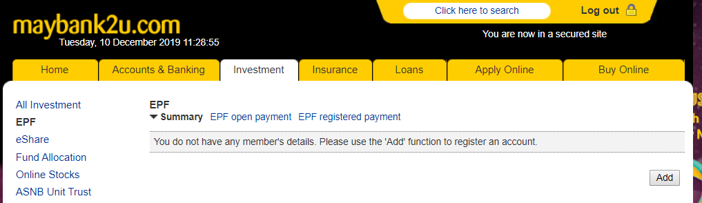 ※ 如果你没有在这里登记过EPF账户,别担心!你可点击「Add」并添加新的EPF账户!