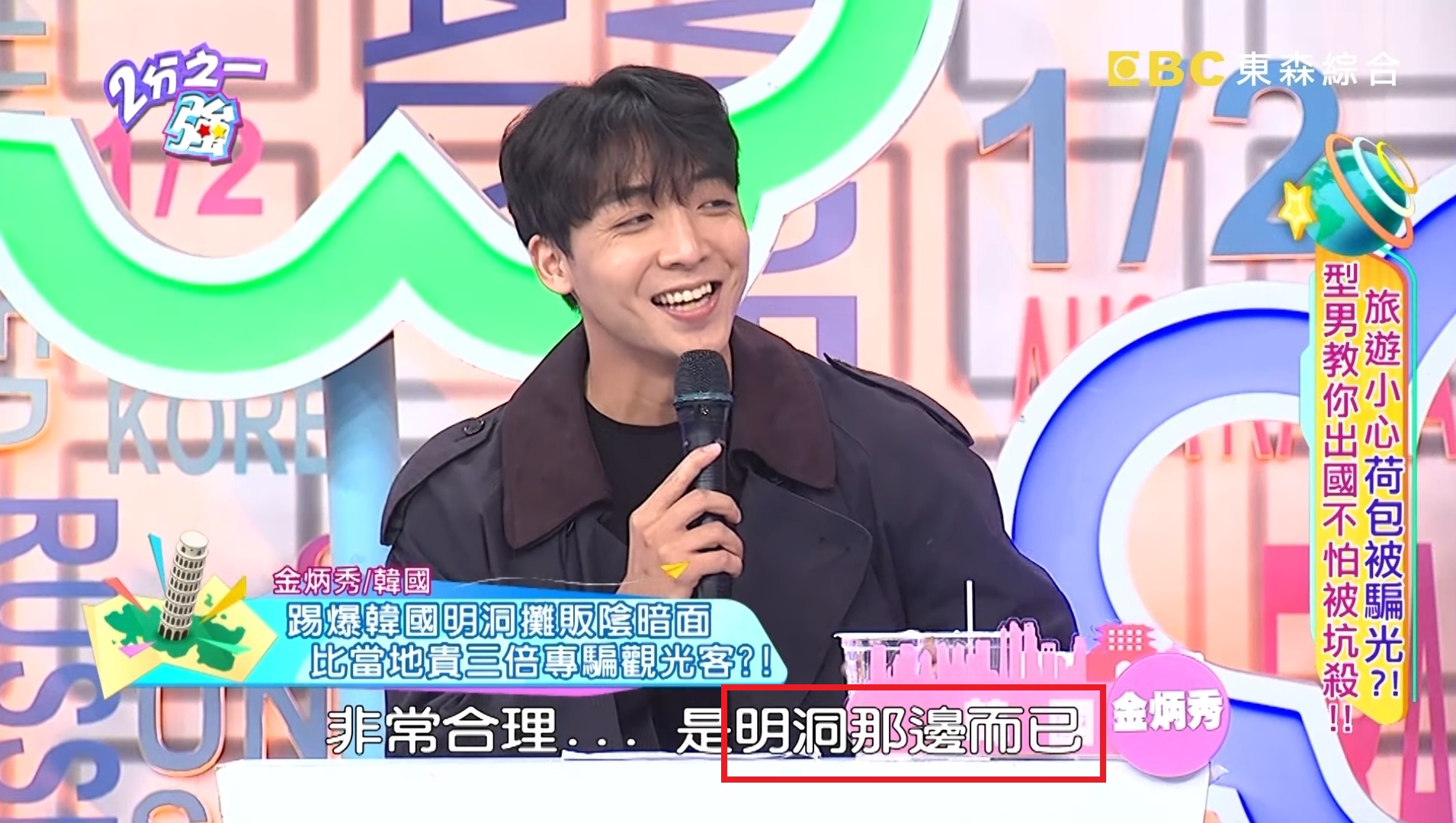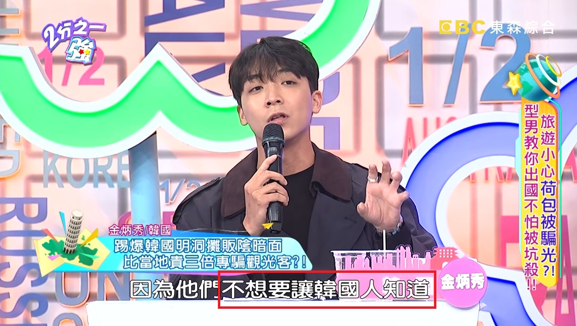 早前从韩国远赴台湾发展的韩国型男——金炳秀,在《2分之一强》节目中,说道:「不要去明洞的路边摊吃东西和买东西!」