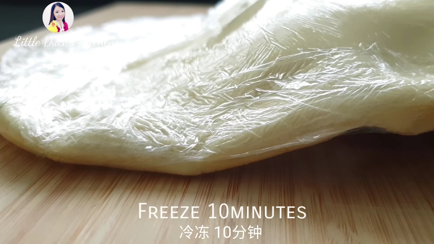 ▼ ⑩ 包起来的粉团放进冰箱内冷冻10分钟