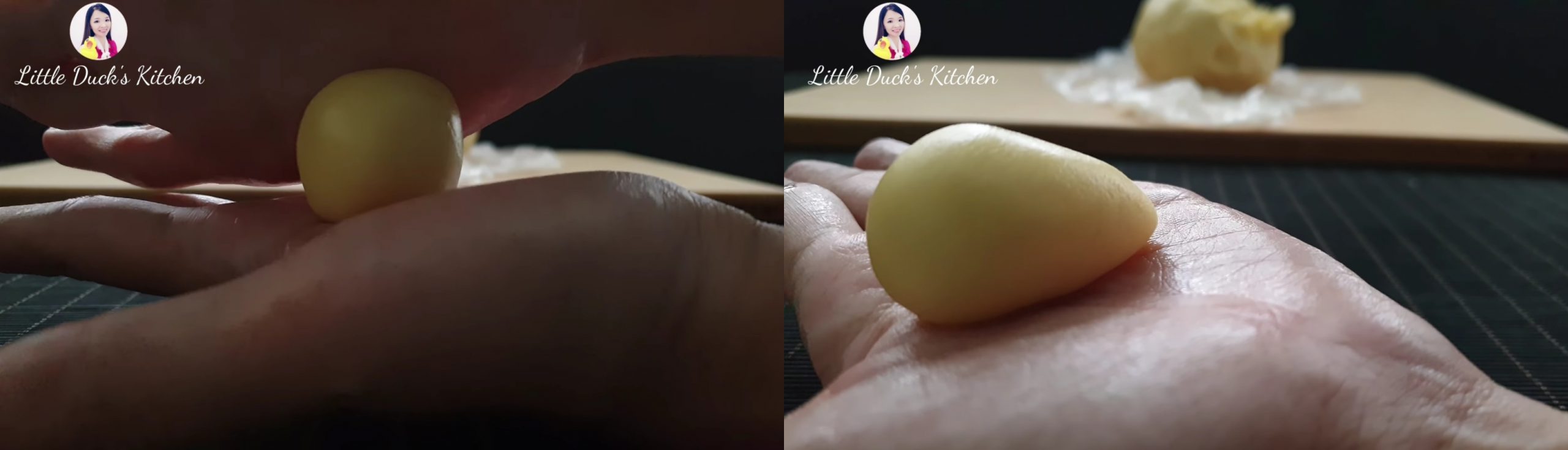 ▼⑪ 10分钟后,取出粉团搓成圆形!