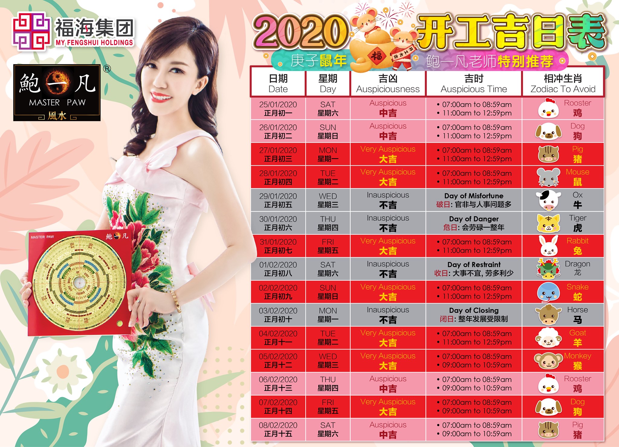 不过,回乡心切的你千万别忘了看个好日子才收工哦!因此鲍一凡风水师特地算出了2020年猪年的收工吉日供大家参考哦!