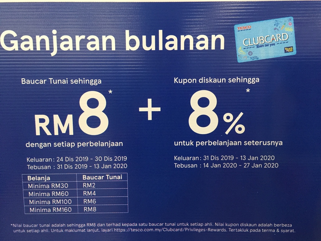 ① 首先,你必须是Tesco会员,消费满特定数额就会得到高达额外RM8折扣的Voucher!