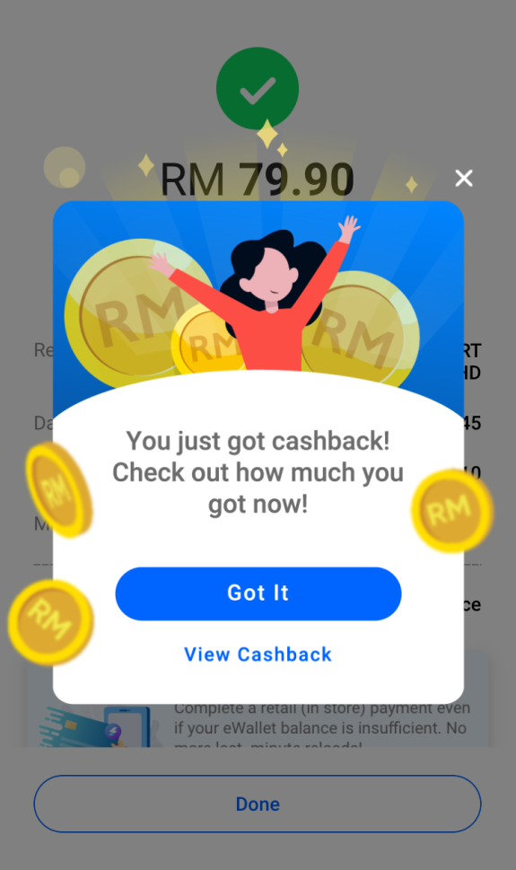 ▼你消费后,Touch ‘n Go eWallet还会另外给你现金回扣!(*需要注意的是每个人的cash back数额将会有所不同)
