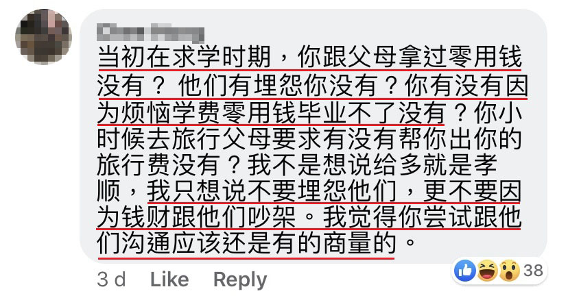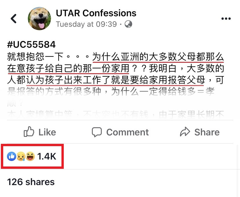 日前一名大马网友在 UTAR Confessions 投稿抱怨,自己的经济能力已经很有限,但父母却坚持要他给家用,让他倍感压力。