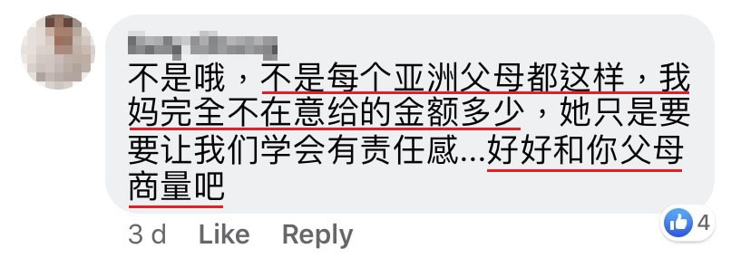 就想抱怨一下。。。为什么亚洲的大多数父母,都那么在意孩子给自己的那一份家用??我明白,大多数的人都认为:孩子出来工作了就是要给家用报答父母。可是报答的方式有很多种,为什么一定得给钱多=孝顺?