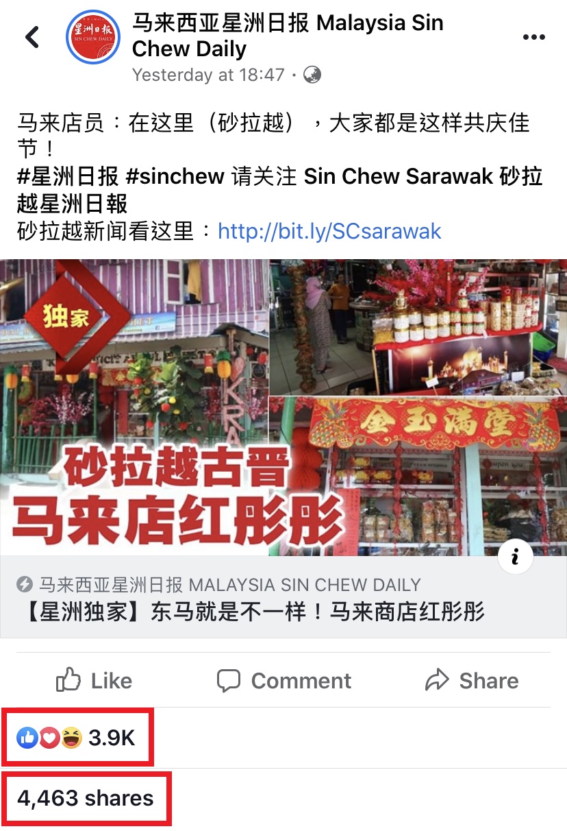 然而就在这个时候,砂拉越古晋(Kuching, Sarawak)却有一家马来商店,为了庆祝农历新年的到来,店内满满的都是华人迎春的装饰!